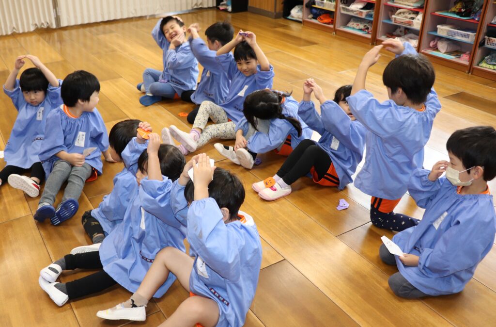 手をブラブラさせたり、円を作ったり、みんなのこうもりはパタパタ飛び回って、元気いっぱい!