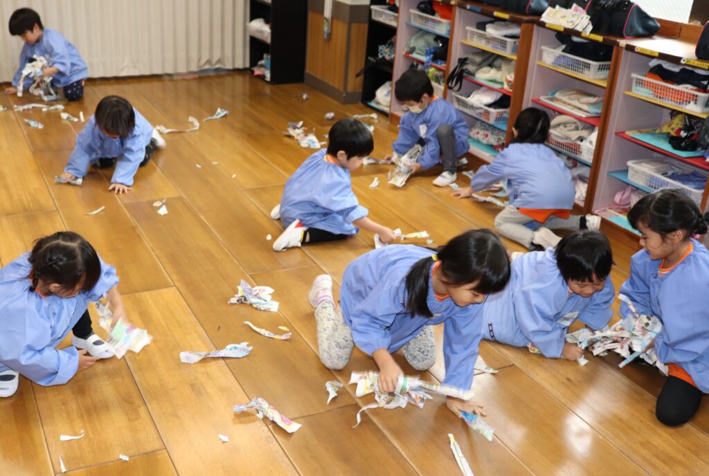 破った時のビリビリの音も、紙吹雪も、散らばった新聞紙を集めることも楽しかったね。