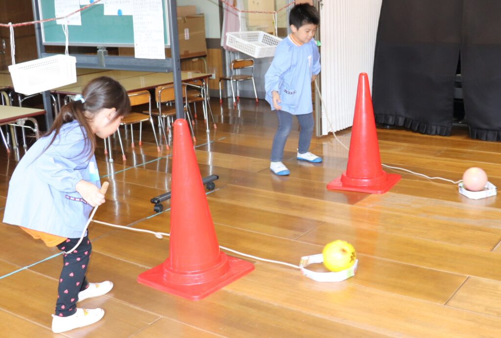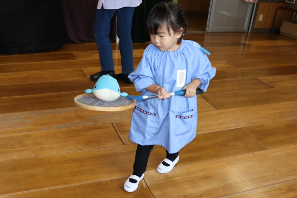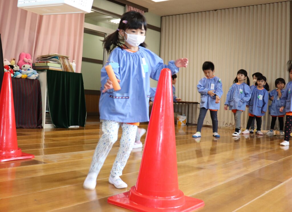 運動あそび 投稿日 2025年10月30日 著者 client-ono カテゴリー 日々のおたより 今日はチーム対抗で運動遊びをしました。 ラケットでボールを運びます。, ボールがぬいぐるみに変わりました(*^-^*) ”ボールのお散歩”では、新聞紙の輪からボールが飛び出さないよう、後ろに注意しながらコーンを回ります。 焦ると中々ボールが入らないよね( ;∀;) 新聞紙爆弾を相手チームに投げ込みます。 対抗戦の結果は同点✨ 走って、運んで、投げて・・今日も頑張りました(*’▽’)