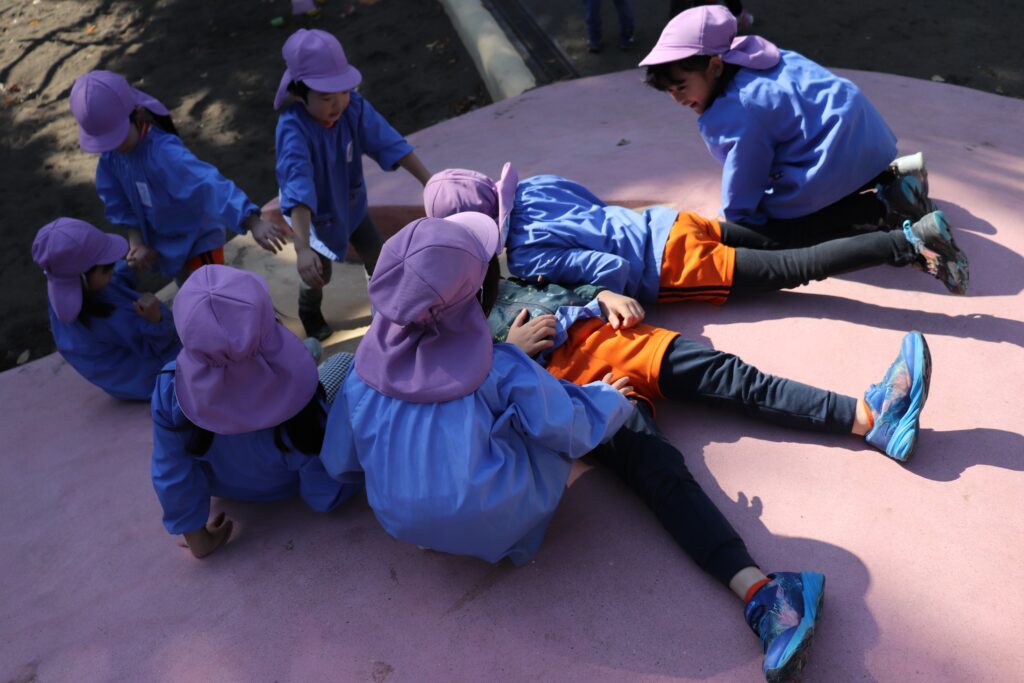 散歩遠足 投稿日 2025年11月7日 著者 client-ono カテゴリー 日々のおたより 今日は近所の公園まで散歩遠足に行ってきました。 強風で枯れ葉が舞い散る中、滑り台やブランコ、サッカーに砂遊びと・・みんな元気いっぱい!! 「またきたい」「たのしかった!」喜んでくれて先生もうれしい♬ 太陽の光を浴びながらの食事も、いつもより美味しく感じられたようです。 年長さんは卒園まであと4か月ですね。 一日一日を大切にして、素敵な思い出を一緒につくっていこうね(^^)/